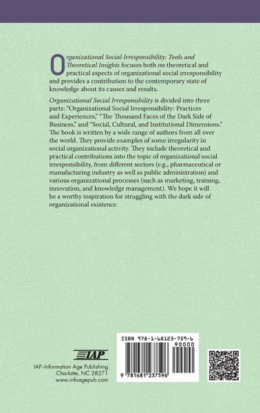"Organizational Social Irresponsibility" explores theoretical and practical aspects of social irresponsibility in organizations. Divided into three parts, it covers practices, the dark side of business, and social, cultural, and institutional dimensions, with contributions from global authors across various sectors and processes.