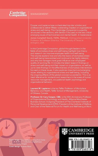 In this Cambridge Companion, global thought leaders in the fields of workplace stress and well-being highlight how theory and research can improve employee health and well-being. It is an ideal reference for students and researchers in the areas of human resources management, occupational health psychology and organisational behavior.