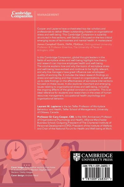 In this Cambridge Companion, global thought leaders in the fields of workplace stress and well-being highlight how theory and research can improve employee health and well-being. It is an ideal reference for students and researchers in the areas of human resources management, occupational health psychology and organisational behavior.