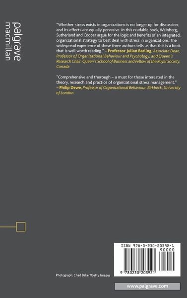 'Whether stress exists in organizations is no longer up for discussion, and its effects are equally pervasive. In this readable book, Weinberg, Sutherland and Cooper argue for the logic and benefits of an integrated, organizational strategy to best deal with stress in organizations. The widespread experience of these three authors tells us that this is a book that is well worth reading.' Professor Julian Barling, Associate Dean, Professor of Organizational Behaviour and Psychology, and Queen's Research Chair, Queen's School of Business and Fellow of the Royal Society, Canada