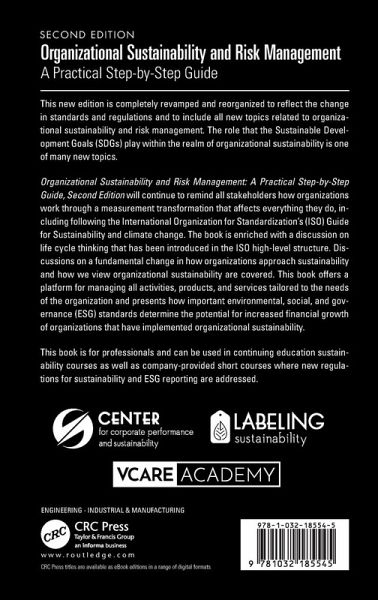 This new edition is completely revamped and reorganized to reflect changes in standards and regulations and to include all new topics related to organizational sustainability and risk management. The role that the Sustainable Development Goals (SDGs) play within the realm of organizational sustainability is one of many new topics.