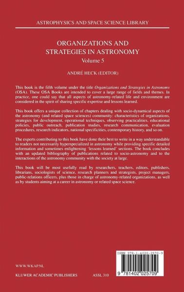 Anyone who doubts that astronomy is enjoying a golden age has only to browse the pages of Organizations and Strategies in Astronomy, Vol. 5. Our golden age is defined not only by the enormity of new discoveries of dark energy, dark matter, extra-solar planets, and the evolution of Mars, but also by the breadth, diversity, and creativity within our community. This volume records our history, in a period of such rapid change and growth that individual astronomers are hard-pressed to keep abreast of their own fields and neighborhoods, much less of developments world-wide. Since the 1950's, changes in the landscape of astronomy are manifold. We have witnessed two epochs of big telescope construction, the 4-meter class telescopes of the '60s and '70s and the 8-to lO-meter class telescopes of the '90s, continuing through today. We accomplished the transition from photographic to digital data, and we continue to improve the size and sen sitivity of astronomical detectors. We have witnessed the flowering of radio astronomy and the opening of the full electromagnetic spectrum through space astronomy. We have seen the growth of national and international astronomy facilities, and a dramatic broadening of the accessibility of data, both through observing facilities available through open competition based on scientific merit and through deep, rich archives of data.