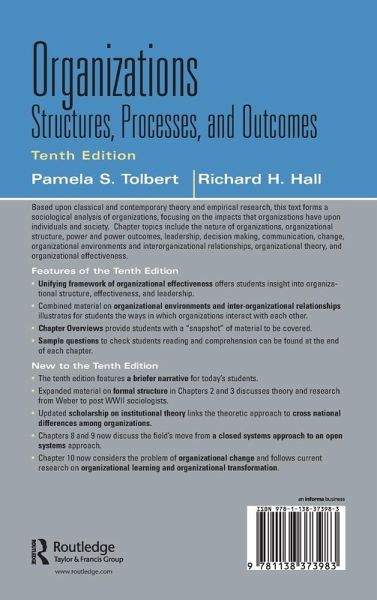 Part I. Introduction 1. Thinking About Organizations Part II. Organizational Structure 2. Organization Structure. Key Dimensions 3. Organization Structure. Explanations Part III. Organizational Processes 4. Power and Power Outcomes 5. Leadership 6. Decision Making 7. Communication 8. Managing Organizational Environments. Conceptualizing the Environment 9. Managing Environments. Contemporary Paradigms Part IV. Outcomes 10. Organizational Performance and Change
