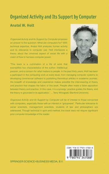 Organized Human Activity and Its Support by Computer will be of interest to those concerned with computers, especially those with and interest in `groupware'. Particular relevance to social scientists, management scientists, students of law, and philosophers are also addressed. Though technical in spirit and method, this book does not expect significant prior computer knowledge of the reader.