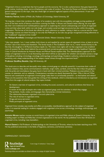 The book demystifies and deconstructs traditional notions of organized crime and offers an interdisciplinary textbook based on an analysis of its history, its codes, its language, symbols, rituals and lifestyles; in short, a cultural introduction to organized crime.