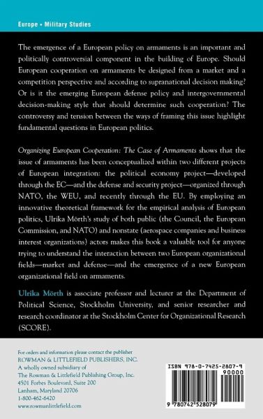 The emergence of a European policy on armaments is an important and politically controversial component in the building of Europe and the controversy and tension between the ways of framing this issue highlight fundamental questions in European politics. Organizing European Cooperation: The Case of Armaments is a valuable tool for anyone trying to understand the interaction between two European organizational fields-market and defense-and the emergence of a new European organizational field on armaments.