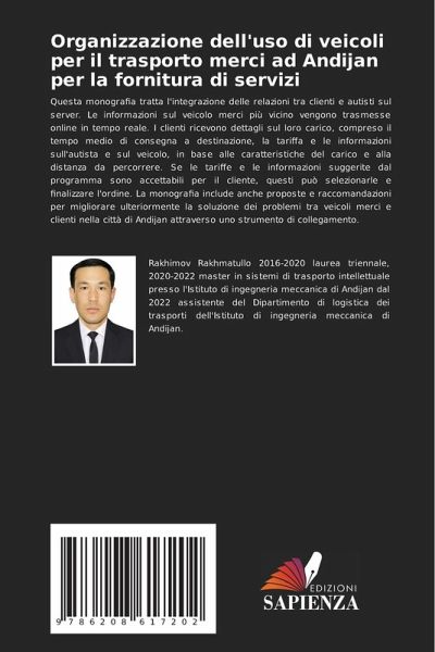 Questa monografia tratta l'integrazione delle relazioni tra clienti e autisti sul server. Le informazioni sul veicolo merci più vicino vengono trasmesse online in tempo reale. I clienti ricevono dettagli sul loro carico, compreso il tempo medio di consegna a destinazione, la tariffa e le informazioni sull'autista e sul veicolo, in base alle caratteristiche del carico e alla distanza da percorrere. Se le tariffe e le informazioni suggerite dal programma sono accettabili per il cliente, questi può selezionarle e finalizzare l'ordine. La monografia include anche proposte e raccomandazioni per migliorare ulteriormente la soluzione dei problemi tra veicoli merci e clienti nella città di Andijan attraverso uno strumento di collegamento.