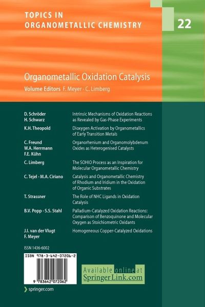 Eighty per cent of all compounds produced in the chemical and pharmaceutical industries require at least one essential catalytic step during their synthesis. At the same time the use of hydrocarbons as a feed-stock for commodity and fine chemicals typically requires an oxidation step, which is usually mediated by a transition metal compound. Consequently oxidation catalysis is a major research field in chemistry, both in academia and in industry. In many such processes, species with metal-carbon bonds are formed as key intermediates, and these processes represent the primary focus of this volume. An important aspect covered by some of the expert contributors is the use of organic ligands - and thus organometallic complex metal fragments - to achieve efficient oxidation catalysis. It has not been self-evident that organometallic complexes can survive the conditions necessary for polar oxygen-transfer reactions, but research over the last decade concerning oxo and peroxo complexes functionalized by organic ligands has clearly shown that relatively non-polar M-C bonds can be quite stable in the presence of oxidants and protic media, and that they may even be essential for the favourable activity and life-time of a catalyst. Also considered in this context is the oxidation chemistry of basic organometallic species in the gas phase, as this may reveal fundamental characteristics inherent to oxidation catalysts.