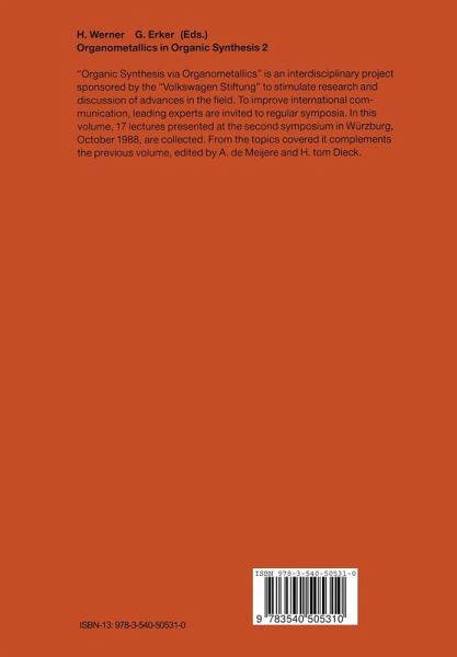 Organic Syntheses via Organometallics.- Diazadiene-Controlled C-C Coupling Reactions on Palladium and Iron.- Highly Reactive ?-Arene Iron Complexes and Their Use in Stoichiometric and Catalytic Cyclic Addition Reactions.- Stereochemistry of Arenetricarbonylchromium Complexes - Useful Intermediates for Stereoselective Syntheses.- Ironcarbonyl Complexes of Exocyclic Polyenes. The Tricarbonyl(1,3-diene)iron Moiety as Remote Substituent.- Metal-Induced Dimerisations of Cyclic Diacetylenes.- Novel Catalytic Applications of Ruthenium Clusters.- Selective Organic Synthesis by Diene Complexes of Early Transition Metals.- Metallacyclobutanes: Synthons and Catalysts.- New Properties of Reagents by Complexation of Carbanions on Transition-Metals: Which Metal is in Each Case the Most Favorable One?.- Organometallic Transformations via C-H Bond Activation.- Remote Functionalization of Carbon-Hydrogen and Carbon-Carbon Bonds by Bare Transition Metal Ions in the Gas Phase.- Aktivierung von Mehrfachbindungssystemen auf Clustern.- Directed - and Undirected - Syntheses of Novel Organic Compounds via Iron, Cobalt and Chromium Complexes.- Enantioselective Synthesis of Organic Compounds with Optically Active Transition Metal Catalysts and Transition Metal Compounds.- Diolefin Iron Complexes - Useful and Versatile Tools in Organic Synthesis.- Donor-Acceptor-Substituted Cyclopropanes via Fischer Carbene Complexes.