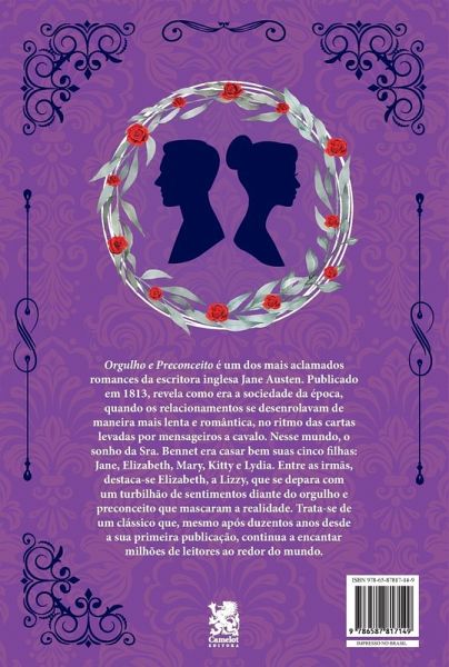 Orgulho e Preconceito é um dos mais aclamados romances da escritora inglesa Jane Austen. Publicado em 1813, revela como era a sociedade da época, quando os relacionamentos se desenrolavam de maneira mais lenta e romântica, no ritmo das cartas levadas por mensageiros a cavalo. Nesse mundo, o sonho da Sra. Bennet era casar bem suas cinco filhas: Jane, Elizabeth, Mary, Kitty e Lydia. Entre as irmãs, destaca-se Elizabeth, a Lizzy, que se depara com um turbilhão de sentimentos diante do orgulho e preconceito que mascaram a realidade. Trata-se de um clássico que, mesmo após duzentos anos desde a sua primeira publicação, continua a encantar milhões de leitores ao redor do mundo.