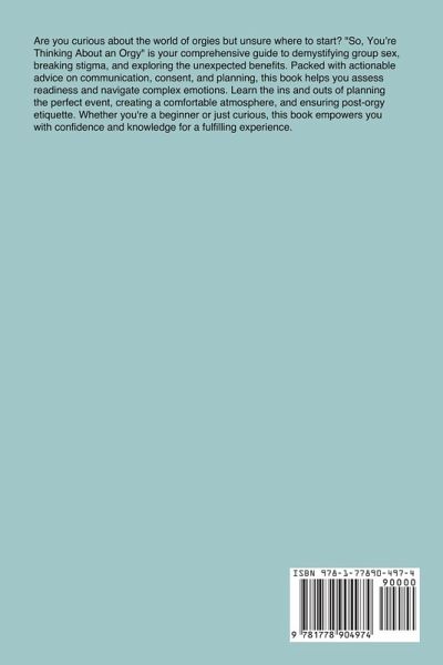 Are you curious about the world of orgies but unsure where to start? So, You're Thinking About an Orgy is your comprehensive guide to demystifying group sex, breaking stigma, and exploring the unexpected benefits. Packed with actionable advice on communication, consent, and planning, this book helps you assess readiness and navigate complex emotions. Learn the ins and outs of planning the perfect event, creating a comfortable atmosphere, and ensuring post-orgy etiquette. Whether youre a beginner or just curious, this book empowers you with confidence and knowledge for a fulfilling experience.