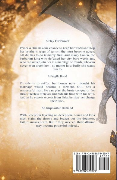 A Play For PowerPrincess Oria has one chance to keep her word and stop her brother's reign of terror: She must become queen. All she has to do is marry first. And marry Lonen, the barbarian king who defeated her city bare weeks ago, who can never join her in a marriage of minds, who can never even touch her-no matter how badly she wants him to.A Fragile BondTo rule is to suffer, but Lonen never thought his marriage would become a torment. Still, he's a resourceful man. He can play the brute conqueror for Oria's faceless officials and bide his time with his wife. And as he coaxes secrets from Oria, he may yet change their fate...An Impossible DemandWith deception layering on deception, Lonen and Oria must claim the throne and brazen out the doubters. Failure means death- for them and their people.But success might mean an alliance powerful beyond imagining...