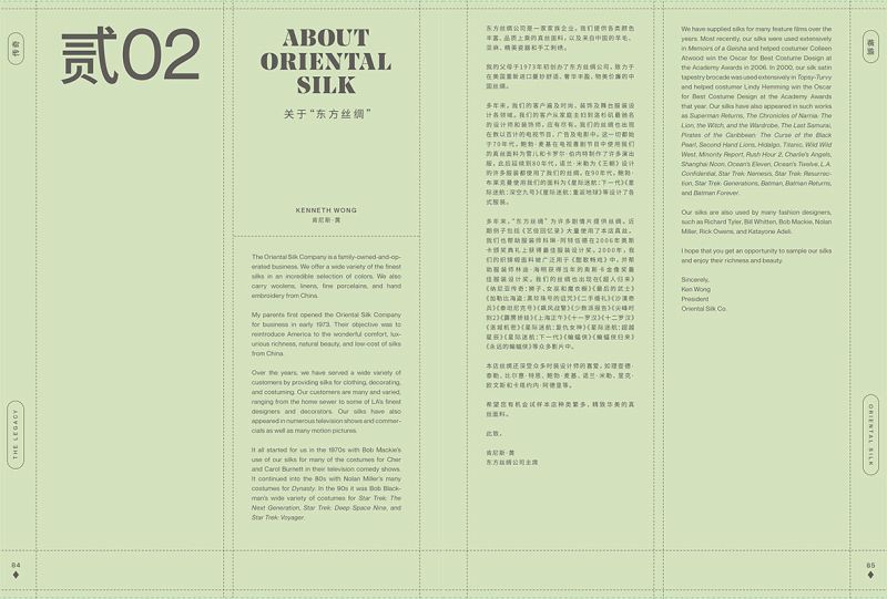 Can corporate history be art? This question can only be asked if one is not familiar with the fascinating long-term project by the Chinese artist Xiaowen Zhu. Anyone who has experienced Oriental Silk will answer this question with a clear "yes." The project's title is also the name of a company founded in Los Angeles in the early 1970s. Specializing in trading and distributing silks, it was headed for decades by Kenneth Wong and his family. Through her multi-sensory works Zhu opens up a multifaceted view of a firm that is distinguished, like its silk products, through its own haptics, style, colors, and values. The people, places, and stories that make up the phenomenon of Oriental Silk form a fascinating, vivid tapestry in which the past and present, art and life, are closely interwoven.