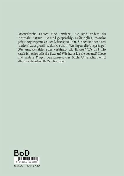 Orientalische Katzen sind "anders". Sie sind anders als "normale" Katzen. Sie sind gesprächig, aufdringlich, manche gehen sogar gerne an der Leine spazieren. Sie sehen aber auch "anders" aus: grazil, schlank, schön. Wo liegen die Ursprünge? Was unterscheidet oder verbindet die Rassen? Wo und wie kaufe ich orientalische Katzen? Wie halte ich sie gesund? Diese und andere Fragen beantwortet das Buch. Unterstützt wird alles durch liebevolle Zeichnungen.