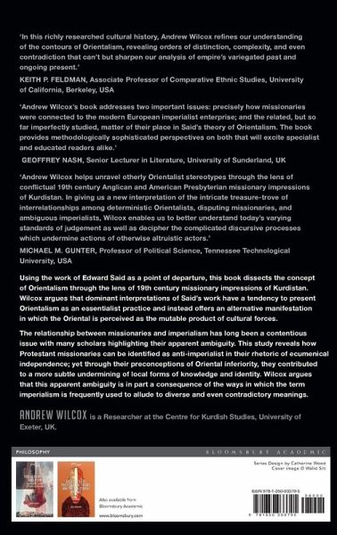 Using the work of Edward Said as a point of departure, this book dissects the concept of Orientalism through the lens of 19th century missionary impressions of Kurdistan. Wilcox argues that dominant interpretations of Said's work have a tendency to present Orientalism as an essentialist practice and instead offers an alternative manifestation in which the Oriental is perceived as the mutable product of cultural forces. The relationship between missionaries and imperialism has long been a contentious issue with many scholars highlighting their apparent ambiguity. This study reveals how Protestant missionaries can be identified as anti-imperialist in their rhetoric of ecumenical independence; yet through their preconceptions of Oriental inferiority, they contributed to a more subtle undermining of local forms of knowledge and identity. Wilcox argues that this apparent ambiguity is in part a consequence of the ways in which the term imperialism is frequently used to allude to diverse and even contradictory meanings; therefore it is not so much the missionaries who are ambiguous, as the ways in which they are judged by today's multivalent standards. The analysis also makes clear the complex discursive processes which can undermine the actions of altruistic individuals. By drawing threads from this 19th century example into the current geopolitical foreground of Middle East-West relations, this book not only sheds light upon a little-known historical case study but also illuminates larger questions of the present and future encouraging a more vigorous examination of contemporary Orientalist prejudices.