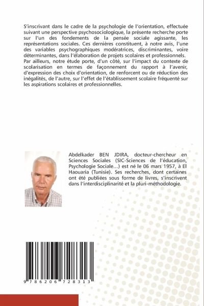 S'inscrivant dans le cadre de la psychologie de l'orientation, effectuée suivant une perspective psychosociologique, la présente recherche porte sur l'un des fondements de la pensée sociale agissante, les représentations sociales. Ces dernières constituent, à notre avis, l'une des variables psychographiques modératrices, discriminantes, voire déterminantes, dans l'élaboration de projets scolaires et professionnels.Par ailleurs, notre étude porte, d'un côté, sur l'impact du contexte de scolarisation en termes de façonnement du rapport à l'avenir, d'expression des choix d'orientation, de renforcent ou de réduction des inégalités, de l'autre, sur l'effet de l'établissement scolaire fréquenté sur les aspirations scolaires et professionnelles.