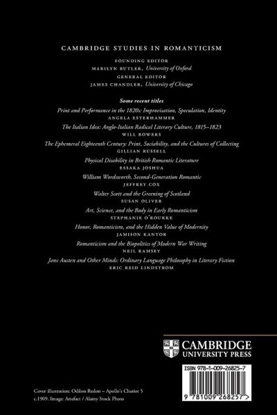 Part I. Disorientating Kant: 1. Introduction: sublimity and abjection 2. Kleist and the Kant-crisis 3. Hölderlin and the philosophers Part II. The Uses of Abjection: 4. The feminist humanism of Felicia Hemans: the poetics of Records of Woman (1828) 5. Thomas Moore and the national lyric 6. Ugo Foscolo's literary hypocrisy Part III. Optimism and Pessimism: 7. Balzac's comic pessimism 8. George Sand's optimism Part IV. Romancing the Modern: 9. Retrospect: Rilke translates Leopardi.