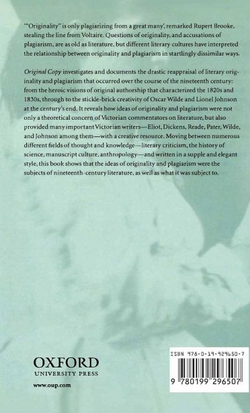 A wide-ranging and elegantly written study of how nineteenth-century culture thought about, and thought with, the idea of originality. It reveals how plagiarism was not only a theoretical concern of Victorian commentators on literature, but also provided a creative resource for many important writers including Eliot, Dickens, Pater, and Wilde.