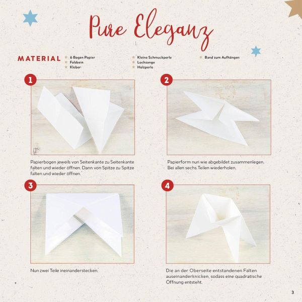 Weihnachten ist Bastelzeit! Und das allzeit beliebteste Bastelprojekt in dieser Zeit ist und bleibt der Stern. Dieses Bastelset mit Faltanleitungen und wunderschönen Motivpapieren bringt alles zusammen und lädt dich dazu ein sofort loszulegen mit dem Faltvergnügen.