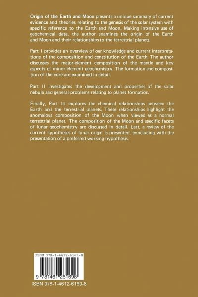 Since the beginning of civilization, the origins of the Earth and Moon have been the subjects of continuing interest, speculation, and enquiry. These are also among the most challenging of all scientific problems. They are, perhaps to a unique degree, interdisciplinary, having attracted the attention of philosophers, astronomers, mathematicians, geologists, chemists, and physicists. A large and diverse literature has developed, far beyond the capacity of individuals to assimilate adequately. Consequently, most of those who attempt to present review-syntheses in the area tend to reflect the perspectives of their own particular disciplines. The present author's approach is that of a geochemist, strongly influenced by the basic phil osophy of Harold Urey. Whereas most astronomical phenomena are controlled by gravitational and magnetic fields, and by nuclear interactions, Urey (1952) emphasized that the formation of the solar system occurred in a pressure-temperature regime wherein the chemical properties of matter were at least as important as those of gravitational and magnetic fields. This was the principal theme of his 1952 book, "The Planets," which revolutionized our approach to this subject. In many subsequent papers, Urey strongly emphasized the importance of meteorites in providing critical evidence of chemical conditions in the primordial solar nebula, and of the chemical fractionation processes which occurred during formation of the terrestrial planets. This approach has been followed by most subsequent geochemists and cosmochemists.
