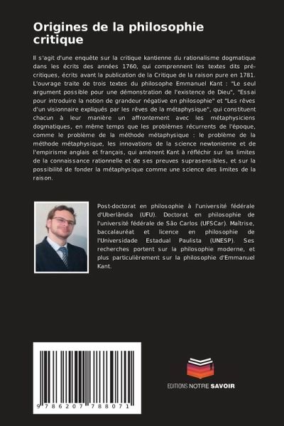 Il s'agit d'une enquête sur la critique kantienne du rationalisme dogmatique dans les écrits des années 1760, qui comprennent les textes dits pré-critiques, écrits avant la publication de la Critique de la raison pure en 1781. L'ouvrage traite de trois textes du philosophe Emmanuel Kant : "Le seul argument possible pour une démonstration de l'existence de Dieu", "Essai pour introduire la notion de grandeur négative en philosophie" et "Les rêves d'un visionnaire expliqués par les rêves de la métaphysique", qui constituent chacun à leur manière un affrontement avec les métaphysiciens dogmatiques, en même temps que les problèmes récurrents de l'époque, comme le problème de la méthode métaphysique : le problème de la méthode métaphysique, les innovations de la science newtonienne et de l'empirisme anglais et français, qui amènent Kant à réfléchir sur les limites de la connaissance rationnelle et de ses preuves suprasensibles, et sur la possibilité de fonder la métaphysique comme une science des limites de la raison.