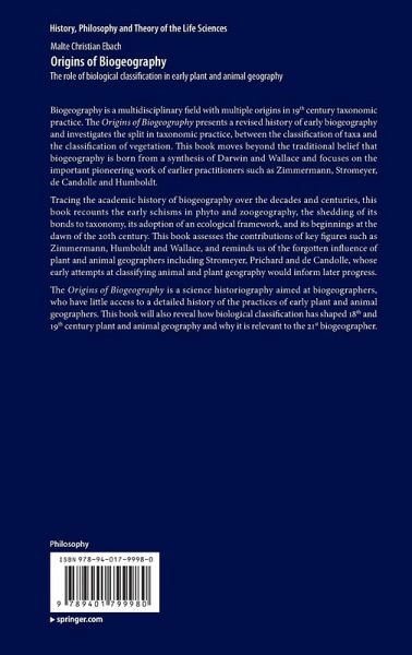 "Malte Christian Ebach's new book focuses on the origins of biogeography as it developed between 1777 and 1900. ... Origins of Biogeography is a richly-written book that critically traces the genesis of several scientific practices that paved the way to biogeography in its current state. It should be recommended to both graduate students and scholars in the history of the life sciences." (Marco Tamborini, HPLS, Vol. 38, 2016)