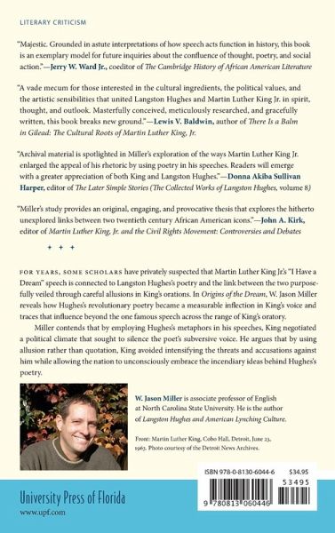 Since Martin Luther King Jr.’s “I Have a Dream” speech, some scholars have privately suspected that King’s “dream” was connected to Langston Hughes’s poetry. Drawing on archival materials, including notes, correspondence, and marginalia, W. Jason Miller provides a completely original and compelling argument that Hughes’s influence on King’s rhetoric was, in fact, evident in more than just the one famous speech. King’s staff had been wiretapped by J. Edgar Hoover and suffered accusations of communist influence, so quoting or naming the leader of the Harlem Renaissance—who had his own reputation as a communist—would only have intensified the threats against the civil rights activist. Thus, the link was purposefully veiled through careful allusions in King’s orations. In Origins of the Dream, Miller lifts that veil and shows how Hughes’s revolutionary poetry became a measurable inflection in King’s voice. He contends that by employing Hughes’s metaphors in his speeches, King negotiated a political climate that sought to silence the poet’s subversive voice. By separating Hughes’s identity from his poems, King helped the nation unconsciously embrace the incendiary ideas behind his poetry.