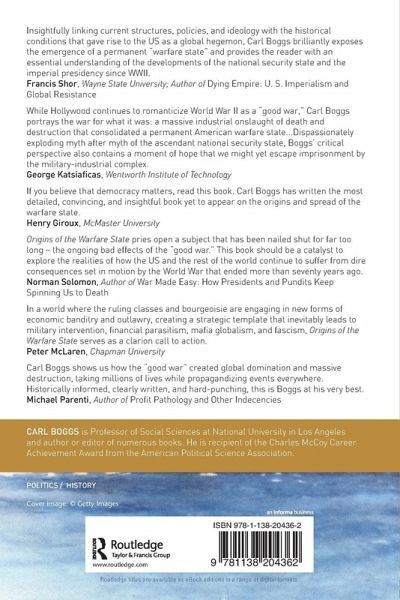 The post-World War II emergence of a full-blown state of perpetual war is arguably the most important feature of contemporary American politics. This book examines the "warfare state" in terms of a broad ensemble of structures, policies, and ideologies: permanent war economy, national security-state, global expansion of military bases, merger of state, corporate, and military power, an imperial presidency, the nuclear establishment, and superpower ambitions. Carl Boggs makes the argument that the "Good War" led to an authoritarian system that has expanded throughout the post-war decades, undermining liberal-democratic institutions and values in the process. He goes on to suggest that current American electoral politics show no sign of rolling back the warfare state and in fact, may push it to a new threshold bordering on American fascism.