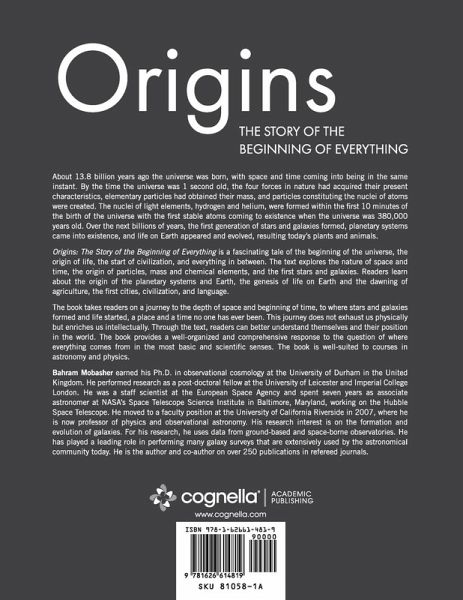 About 13.8 billion years ago the universe was born, with space and time coming into being in the same instant. By the time the universe was 1 second old, the four forces in nature had acquired their present characteristics, elementary particles had obtained their mass, and particles constituting the nuclei of atoms were created. The nuclei of light elements, hydrogen and helium, were formed within the first 10 minutes of the birth of the universe with the first stable atoms coming to existence when the universe was 380,000 years old. Over the next billions of years, the first generation of stars and galaxies formed, planetary systems came into existence, and life on Earth appeared and evolved, resulting today's plants and animals. Origins: The Story of the Beginning of Everything is a fascinating tale of the beginning of the universe, the origin of life, the start of civilization, and everything in between. The text explores the nature of space and time, the origin of particles, mass and chemical elements, and the first stars and galaxies. Readers learn about the origin of the planetary systems and Earth, the genesis of life on Earth and the dawning of agriculture, the first cities, civilization, and language. The book takes readers on a journey to the depth of space and beginning of time, to where stars and galaxies formed and life started, a place and a time no one has ever been. This journey does not exhaust us physically but enriches us intellectually. Through the text, readers can better understand themselves and their position in the world. The book provides a well-organized and comprehensive response to the question of where everything comes from in the most basic and scientific senses. The book is well-suited to courses in astronomy and physics. Bahram Mobasher earned his Ph.D. in observational cosmology at the University of Durham in the United Kingdom. He performed research as a post-doctoral fellow at the University of Leicester and Imperial College London. He was a staff scientist at the European Space Agency and spent seven years as associate astronomer at NASA's Space Telescope Science Institute in Baltimore, Maryland, working on the Hubble Space Telescope. He moved to a faculty position at the University of California Riverside in 2007, where he is now professor of physics and observational astronomy. His research interest is on the formation and evolution of galaxies. For his research, he uses data from ground-based and space-borne observatories. He has played a leading role in performing many galaxy surveys that are extensively used by the astronomical community today. He is the author and co-author on over 250 publications in refereed journals.