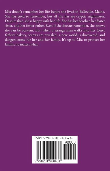 Mia doesn't remember her life before she lived in Belleville, Maine. She has tried to remember, but all she has are cryptic nightmares. Despite that, she is happy with her life. She has her brother, her foster sister, and her foster father. Even if she doesn't remember, she knows she can be content. But, when a strange man walks into her foster father's bakery, secrets are revealed, a new world is discovered, and dangers come for her and her family. It's up to Mia to protect her family, no matter what.