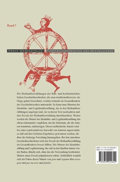 Die Herkunftserzählungen der früh- und hochmittelalterlichen Geschichtsschreiber, die man traditionellerweise als Origo gentis bezeichnet, werden erstmals im Gesamtkontext des Geschichtswerkes untersucht. So kann man Mustern der Identitäts- und Legitimitätsstiftung, die in den Herkunftserzählungen angelegt sind, im weiteren Text nachzuspüren und den Zweck der Herkunftserzählung durchleuchten. Weiter werden die Muster der Identitäts- und Legitimitätsstiftung diachron miteinander verglichen, um die Schemata, die die Autoren benutzten, aufzuzeigen. Dieser methodische Ansatz wird bei einer repräsentativen Auswahl von Autoren angewendet, so dass auf drei Gebieten Ergebnisse gewonnen werden, die über die bisherige Forschung hinausgehen. Bei den einzelnen Geschichtsschreibern wird der Zweck der Herkunftserzählung im Gesamtkontext besser fassbar. Die Muster der Identitätsstiftung und Legitimierung, die sich in den Quellen immer wieder finden, ähneln sich, ohne dass die Verwendung bestimmter Muster einen Zweck präjudizieren würde. Schließlich wandelt sich der Fokus dieser Muster von gens und regnum über terra, gens und pax zu terra und familia.