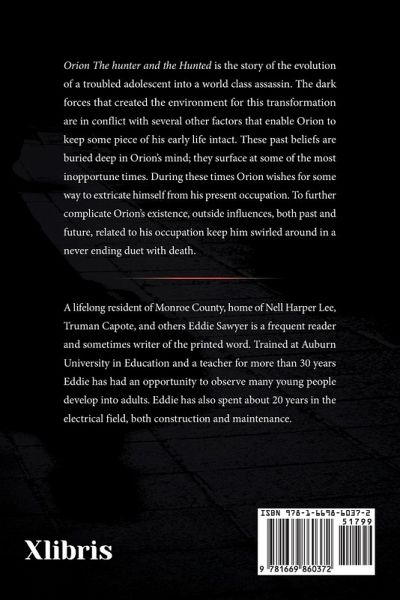 Orion The hunter and the Hunted is the story of the evolution of a troubled adolescent into a world class assassin. The dark forces that created the environment for this transformation are in conflict with several other factors that enable Orion to keep some piece of his early life intact. These past beliefs are buried deep in Orion's mind; they surface at some of the most inopportune times. During these times Orion wishes for some way to extricate himself from his present occupation. To further complicate Orion's existence, outside influences, both past and future, related to his occupation keep him swirled around in a never ending duet with death.