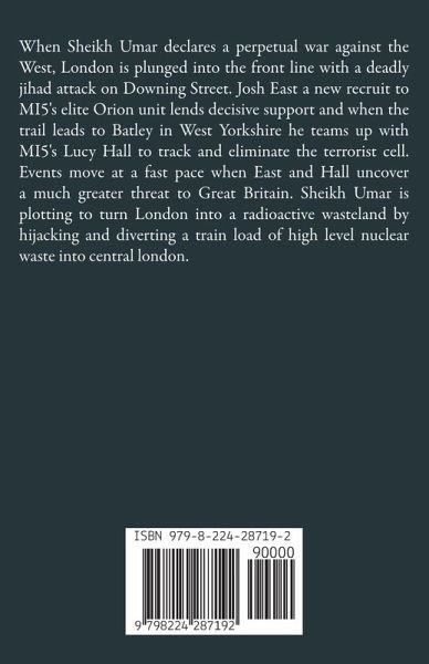 When Sheikh Umar declares a perpetual war against the West, London is plunged into the front line with a deadly jihad attack on Downing Street. Josh East a new recruit to MI5's elite Orion unit lends decisive support and when the trail leads to Batley in West Yorkshire he teams up with MI5's Lucy Hall to track and eliminate the terrorist cell. Events move at a fast pace when East and Hall uncover a much greater threat to Great Britain. Sheikh Umar is plotting to turn London into a radioactive wasteland by hijacking and diverting a train load of high level nuclear waste into central london.