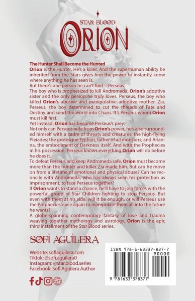 The Hunter Shall Become the Hunted Orion is the Hunter. He's a killer. And the superhuman ability he inherited from the Stars gives him the power to instantly know where anything he has seen is. But there's one person he can't find-Perseus. The boy who is prophesized to kill Andromeda, Orion's adoptive sister and the only person he truly loves. Perseus, the boy who killed Orion's abusive and manipulative adoptive mother, Zia. Perseus, the boy determined to cut the threads of Fate and Destiny and send the world into Chaos. It's Perseus whom Orion must kill first. Yet instead, Orion has become Perseus's prey. Not only can Perseus hide from Orion's power, he's also surrounded himself with a cadre of threats and creatures: the high-flying Pleiades; the grotesque Typhon, father of all monsters; and Arianna, the embodiment of Darkness itself. And with the Prophecies in his possession, Perseus knows everything Orion will do before he does it. To defeat Perseus and keep Andromeda safe, Orion must become more than the hunter and killer Zia made him. But can he move on from a lifetime of emotional and physical abuse? Can he reconcile with Andromeda, who has always seen his protection as imprisonment, to face Perseus together? If Orion wants to stand a chance, he'll have to join forces with the powerful group of Star Children fighting to stop Perseus. But even with them at his side, will it be enough, or will Perseus use the Prophecies once again to manipulate them all into the future he wants? A globe-spanning contemporary fantasy of love and trauma weaving together mythology and astrology, Orion is the epic third installment of the Star Blood series.