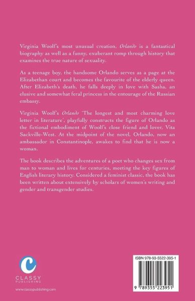 Virginia Woolf's most unusual creation, Orlando is a fantastical biography as well as a funny, exuberant romp through history that examines the true nature of sexuality. As a teenage boy, the handsome Orlando serves as a page at the Elizabethan court and becomes the favourite of the elderly queen. After Elizabeth's death, he falls deeply in love with Sasha, an elusive and somewhat feral princess in the entourage of the Russian embassy. Virginia Woolf's Orlando 'The longest and most charming love letter in literature', playfully constructs the figure of Orlando as the fictional embodiment of Woolf's close friend and lover, Vita Sackville-West. At the midpoint of the novel, Orlando, now an ambassador in Constantinople, awakes to find that he is now a woman. The book describes the adventures of a poet who changes sex from man to woman and lives for centuries, meeting the key figures of English literary history. Considered a feminist classic, the book has been written about extensively by scholars of women's writing and gender and transgender studies.