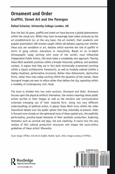 Based on an in-depth ethnographic study working with some of the world's most influential Independent Public Artists, this book takes a completely new approach. Placing these illicit aesthetic practices within a broader historical, political, and aesthetic context, it argues that they are in fact both intrinsically ornamental (working within a classic architectonic framework), as well as innately ordered (within a highly ritualized, performative structure). Rather than disharmonic, destructive forms, rather than ones solely working within the dynamics of the market, these insurgent images are seen to reface rather than deface the city, operating within a modality of contemporary civic ritual.