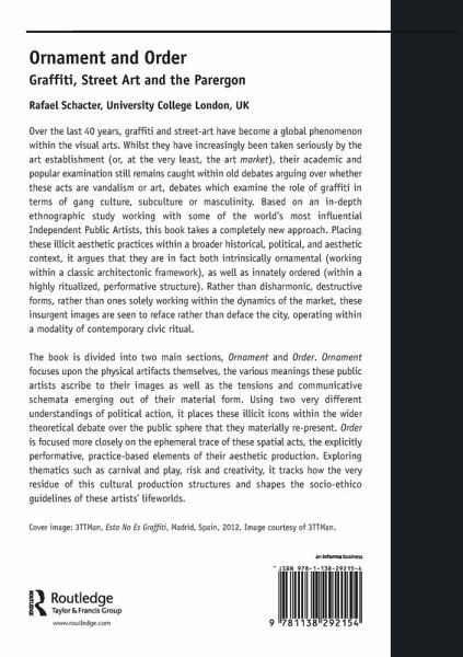 Based on an in-depth ethnographic study working with some of the world's most influential Independent Public Artists, this book takes a completely new approach. Placing these illicit aesthetic practices within a broader historical, political, and aesthetic context, it argues that they are in fact both intrinsically ornamental (working within a classic architectonic framework), as well as innately ordered (within a highly ritualized, performative structure). Rather than disharmonic, destructive forms, rather than ones solely working within the dynamics of the market, these insurgent images are seen to reface rather than deface the city, operating within a modality of contemporary civic ritual.