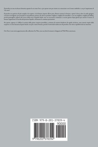 Il petrolio era una ricchezza fantastica quanto lo era stato l'oro, e per questo non per niente era conosciuto con il nome simbolico e un po' inquietante di "oro nero". Il petrolio era qualcosa di più semplice da scoprire e da sfruttare rispetto all'oro puro. Bastava tentare la fortuna e aprire la bocca dove la nafta sgorgava con forza travolgente, per possedere la straordinaria miniera che doveva produrre migliaia e migliaia di tonnellate e con esse migliaia e migliaia di dollari, perché germogliava appena dal viscere della terra il liquido fetido, non era necessario continuare a scavare giorno dopo giorno per estrarre il tesoro. È bastato organizzare la raccolta del prezioso liquido e sfruttarne le continue prestazioni. Per questo, appena si è diffusa la notizia della prima scoperta petrolifera, centinaia di uomini desiderosi di rapide ricchezze, sono rimasti stupiti dalla scoperta e si sono lanciati ad aprire buche con più o meno fortuna, perché il sottosuolo traboccava di petrolio e lui voleva espellerlo dal suo intestino. Oro Nero è una storia appartenente alla collezione Far West, una raccolta di romanzi sviluppati nel Wild West americano.