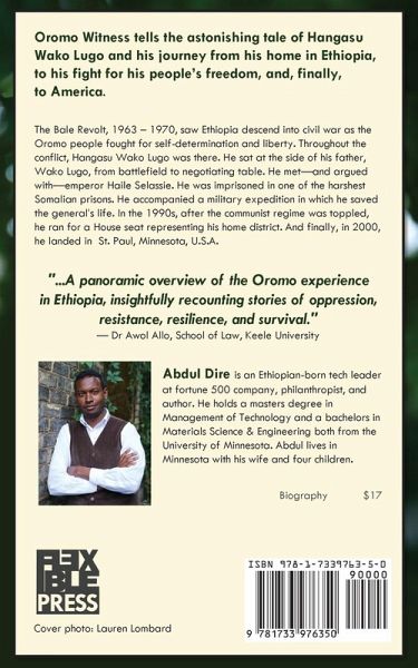 Oromo Witness tells the astonishing tale of Hangasu Wako Lugo, from his home in Ethiopia to his fight for his people's freedom and, finally, to America. Twin Cities debut author, Abdul Dire, Hangasu's nephew, takes readers on a journey of survival, resistance, triumph, internal conflict, and wisdom. Along the way, the reader will learn about the history and culture of the Oromo people and their struggle for the opportunity to determine their own destiny on their own land. During the Bale Revolt, 1963 - 1970, Ethiopia descended into civil war as the Oromo people fought for self-determination and liberty. Throughout the conflict, Hangasu was there. He sat at the side of his father, Wako Lugo, from battlefield to negotiating table. He met-and argued with-Emperor Haile Selassie. He was imprisoned in one of the harshest Somali prisons. He accompanied a military expedition in which he saved a general's life. In the 1990s, after the communist regime was toppled, he ran for a House seat representing his home district. And finally, in 2000, he found a new life in St. Paul, Minnesota, U.S.A.