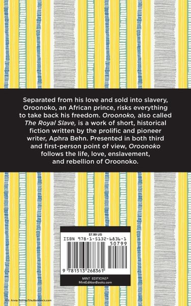 After learning how to fight at a young age, Oroonoko, an African prince, fights alongside his army against invading forces. When a celebrated general saves Oroonoko's life, trading his own to take an arrow for Oroonoko, the young prince feels indebted to the man and decides to go pay his respects to the late general's family. There, he meets Imoinda, the daughter of the general. Oroonoko and Imoinda quickly fall in love and become betrothed, but the King, Oroonoko's father, hears of Imoinda's beauty and decides to take her as one of his wives. When Oroonoko and Imoinda rebel against this, the King sells Imoinda into slavery. Heartbroken, Oroonoko goes back to war, only to be tricked and captured by a British general. After the British general sells Oroonoko into slavery, he is reunited with Imoinda, as they are sold to work on the same plantation. This joy is short lived, as the horrors of slavery take its toll. When Imoinda becomes pregnant, the couple decide to do whatever it takes to ensure the best life for their child. They beg to be emancipated, but the plantation owner hardly considers their request, forcing Oroonoko to take his freedom back by force. With a lifetime of training, the love of his life at his side, and a dedication to regain his freedom, Oroonoko must lead a slave rebellion, risking everything he has for what he and his family should have: freedom. Oroonoko: or, The Royal Slave has earned acclaim from both literary critics and historians. When it was originally published in 1688, less than a year before author Aphra Behn died, Oroonoko: or, The Royal Slave did not receive immediate attention. However, Behn's work did gain popularity after a stage version of the novel was released in 1695. While the accuracy of the novel's plot has been questioned and debated by historians, Oroonoko: or The Royal Slave has earned cultural and historical significance by being claimed as one of the first novels written in English. Along with its prolific and innovative writer, the novel has earned significance that is still admirable today. Now redesigned with an eye-catching cover and reprinted in a modern font, Oroonoko: or The Royal Slave by Aphra Behn is accessible for a modern audience. Since our inception in 2020, Mint Editions has kept sustainability and innovation at the forefront of our mission. Each and every Mint Edition title gets a fresh, professionally typeset manuscript and a dazzling new cover, all while maintaining the integrity of the original book. With thousands of titles in our collection, we aim to spotlight diverse public domain works to help them find modern audiences. Mint Editions celebrates a breadth of literary works, curated from both canonical and overlooked classics from writers around the globe.