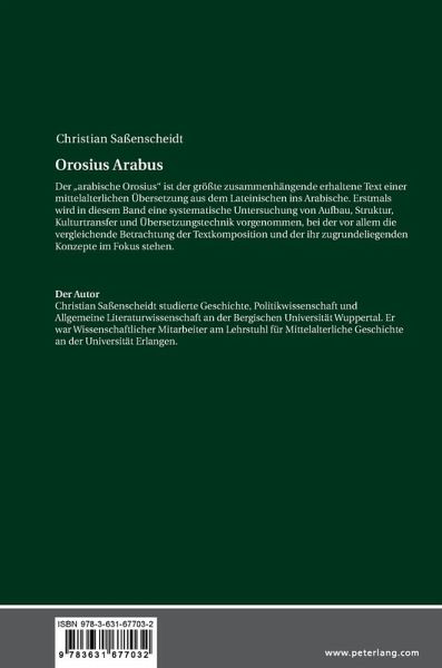 Der «arabische Orosius» ist der größte zusammenhängende erhaltene Text einer mittelalterlichen Übersetzung aus dem Lateinischen ins Arabische. Erstmals wird in diesem Band eine systematische Untersuchung von Aufbau, Struktur, Kulturtransfer und Übersetzungstechnik vorgenommen, bei der vor allem die vergleichende Betrachtung der Textkomposition und der ihr zugrundeliegenden Konzepte im Fokus stehen.
