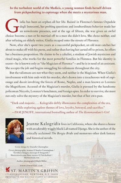 In this irresistible historical novel set in the turbulent world of the Medicis, a young woman finds herself driven from pick-pocketing to espionage when she meets a mysterious man. Giulia has been an orphan all her life. Raised in Florence's famous Ospedale degli Innocenti, her probing questions and insubordinate behavior made her an unwelcome presence, and at the age of fifteen, she was given an awful choice: become a nun, or be married off to a man she didn't love. She chose neither, and after refusing an elderly suitor, Giulia escaped onto the streets of Florence. Now, after spending two years as a successful pickpocket, an old man catches her about to make off with his purse, and rather than having her carted off to prison he offers her a business proposition. The man claims to be a cabalist, a student of Jewish mysticism and ritual magic, who works for the most powerful families in Florence. But his identity is secret-he is known only as "the Magician of Florence"-and he is in need of an assistant. She accepts the job and begins smuggling his talismans throughout the city. But the talismans are not what they seem, and neither is the Magician. When Giulia's involvement with him ends with his murder, she's drawn into a treacherous web of espionage and deceit involving the forces of Rome, Naples, and a man known as Lorenzo the Magnificent. Accused of the Magician's murder, Giulia is pursued by the handsome policeman Niccolo, Lorenzo's henchmen, and foreign spies, and in order to survive, she must not only solve the mystery of the mystery of the Magician's murder, but that of her own past.