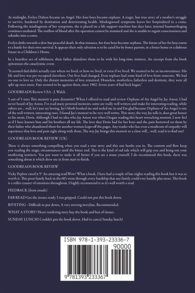 At midnight, Evelyn Dalton became an Angel. Her four boys became orphans. A tragic, but true story of a mother's struggle to survive, burdened by destitution and deteriorating health. Misdiagnosed symptoms leaves her hospitalized in a coma. Following the misdiagnosis of her symptoms, she is placed on a life support machine but days later, internal haemorrhaging continues unabated. The outflow of blood after the operation cannot be stemmed and she is unable to regain consciousness and subsides into a coma. Evelyn drifts towards a slow but peaceful death. In that instance, her four boys become orphans. The future of her for boys turns to a battle for their own survival. It appears their only salvation is to be cared for by foster parents, in a foster home or a dubious future in a Children;'s Home. In a heartless act of selfishness, their father abandons them to be with his long-time mistress. An excerpt from the book epitomizes the cataclysmic event. "It seemed dad didn't actually care where we lived, or how we lived, or even if we lived. We seemed to be an inconvenience. His life and love was pre-occupied elsewhere. Our lives had changed. Even orphans had some kind of love from someone. We had no-one to love us. Only the distant memories of love remained. Homeless, motherless, fatherless and destitute, they were all split up once more. Fate seemed to be against them, since 1962. Seven years of bad luck began." GOODREADS Review USA JWalch 5.0 out of 5 stars This memoir is pure dynamite! Reviewed in the United States on August 21, 2020 When I offered to read and review Orphans of An Angel by Jay Aston, I had never heard of Jay Aston. I've read many personal memoirs, some are really well written and make for interesting reading, while others are… well, let's just say boring. Jay's blurb hooked me and reeled me in and I'm glad because Orphans of An Angel is one of the well written, interesting ones. I found Jay's memoir to be very well writte. This story, the way Jay tells it, does great honor to his mom, Doris. Although I had no idea who Jay Aston was when I began reading this heart wrenching memoir, I now feel as if I have known him and his brothers all my life. The love that Doris had for her boys and the pain bestowed on them by their father who abandoned them for another woman leaps off the pages. Any reader of these words who has even a modicum of empathy will experience that love and pain right along with them. The way Jay brings this memoir to a close will… well, read it to find out. GOODREADS BOOK REVIEW (UK) There is always something compelling when you read a true story and this one hooks you in. The content and flow will keep you reading the tragic circumstances until the bitter end. This is the kind of sad tale which will grip you and bring out your mothering instincts or protective shield. You just want to make it all better if you are a mum yourself. I do recommend this book, there was something about it which drew me in from start to finish. GOODREADS BOOK REVIEW Aug 11, 2020 Vicky Peplow rated it 5* An amazing read Wow! What a book. I have had a couple of late nights reading this book but it was so worth it. This poor family back in the 60's went through every hardship that any family could ever handle plus more. This book takes you on a roller-coaster of emotions throughout this book. I highly recommend it as it's well worth a read. FEEDBACK (from emails) FAB READ Get the tissues ready. I was gripped. Could not put down this book. Recommended. RIVETING - Difficult to put down. A very moving storyline. WHAT A STORY! Heart rendering story buy the book and box of tissues you will need them. SUNDAY LUNCH! Couldn't put the book down. Had to cancel Sunday lunch!