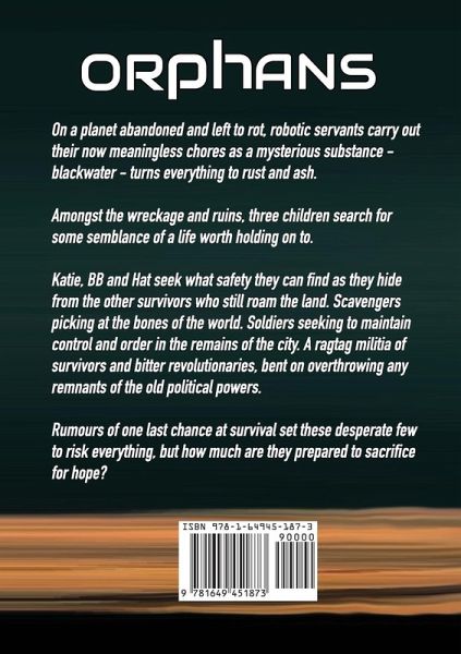 Left behind on a dying world, three children wander the broken and abandoned remains of civilisation. Katie, BB and Hat seek what little life has left for them while hiding from the other survivors who still roam the land. Scavengers pick at the bones and ruins of the world. Soldiers seek to maintain control and order in the automated remains of the city. A ragtag militia of survivors and bitter revolutionaries, bent on overthrowing any remnants of the old political powers. One last daring gamble set these desperate few on a collision course, but how much are they prepared to risk for the…mehr