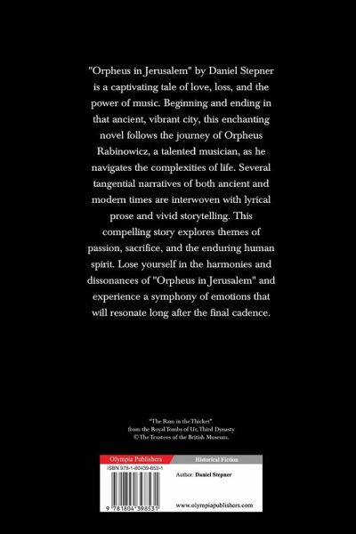 "Orpheus in Jerusalem" by Daniel Stepner is a captivating tale of love, loss, and the power of music. Beginning and ending in that ancient, vibrant city, this enchanting novel follows the journey of Orpheus Rabinowicz, a talented musician, as he navigates the complexities of life. Several tangential narratives of both ancient and modern times are interwoven with lyrical prose and vivid storytelling. This compelling story explores themes of passion, sacrifice, and the enduring human spirit. Lose yourself in the harmonies and dissonances of "Orpheus in Jerusalem" and experience a symphony of emotions that will resonate long after the final cadence.