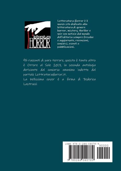 94 racconti di puro terrore, questo è tanto altro è Orrore al Sole 2017, la nuova antologia derivante dal concorso omonimo indetto dal portale LettraturaHorror.it, alla sua seconda edizione