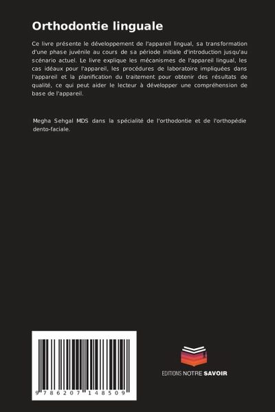 Ce livre présente le développement de l'appareil lingual, sa transformation d'une phase juvénile au cours de sa période initiale d'introduction jusqu'au scénario actuel. Le livre explique les mécanismes de l'appareil lingual, les cas idéaux pour l'appareil, les procédures de laboratoire impliquées dans l'appareil et la planification du traitement pour obtenir des résultats de qualité, ce qui peut aider le lecteur à développer une compréhension de base de l'appareil.