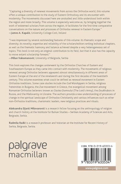 This book explores the changes underwent by the Orthodox Churches of Eastern and Southeastern Europe as they came into contact with modernity. The movements of religious renewal among Orthodox believers appeared almost simultaneously in different areas of Eastern Europe at the end of the nineteenth and during the first decades of the twentieth century. This volume examines what could be defined as renewal movement in Eastern Orthodox traditions. Some case studies include the God Worshippers in Serbia, religious fraternities in Bulgaria, the Zoe movement in Greece, the evangelical movement among Romanian Orthodox believers known as Oastea Domnului (The Lord's Army), the Doukhobors in Russia, and the Maliovantsy in Ukraine. This volume provides a new understanding of processes of change in the spiritual landscape of Orthodox Christianity and various influences such as other non-Orthodox traditions, charismatic leaders, new religious practicesand rituals.
