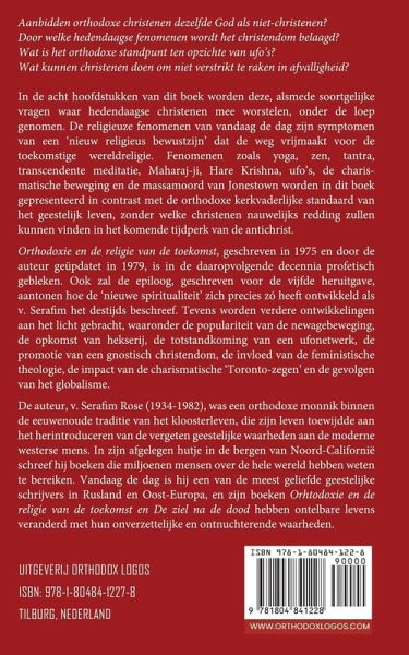 In de acht hoofdstukken van dit boek worden deze, alsmede soortgelijke vragen waar hedendaagse christenen mee worstelen, onder de loep genomen. De religieuze fenomenen van vandaag de dag zijn symptomen van een 'nieuw religieus bewustzijn' dat de weg vrijmaakt voor de toekomstige wereldreligie. Fenomenen zoals yoga, zen, tantra, transcendente meditatie, Maharaj-ji, Hare Krishna, ufo's, de charismatische beweging en de massamoord van Jonestown worden in dit boek gepresenteerd in contrast met de orthodoxe kerkvaderlijke standaard van het geestelijk leven, zonder welke christenen nauwelijks redding zullen kunnen vinden in het komende tijdperk van de antichrist. Orthodoxie en de religie van de toekomst, geschreven in 1975 en door de auteur geüpdatet in 1979, is in de daaropvolgende decennia profetisch gebleken. Ook zal de epiloog, geschreven voor de vijfde heruitgave, aantonen hoe de 'nieuwe spiritualiteit' zich precies zó heeft ontwikkeld als v. Serafim het destijds beschreef. Tevens worden verdere ontwikkelingen aan het licht gebracht, waaronder de populariteit van de newagebeweging, de opkomst van hekserij, de totstandkoming van een ufonetwerk, de promotie van een gnostisch christendom, de invloed van de feministische theologie, de impact van de charismatische 'Toronto-zegen' en de gevolgen van het globalisme.
