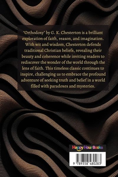 "Orthodoxy" by G. K. Chesterton is a brilliant exploration of faith, reason, and imagination. With wit and wisdom, Chesterton defends traditional Christian beliefs, revealing their beauty and coherence while inviting readers to rediscover the wonder of the world through the lens of faith. This timeless classic continues to inspire, challenging us to embrace the profound adventure of seeking truth and belief in a world filled with paradoxes and mysteries.